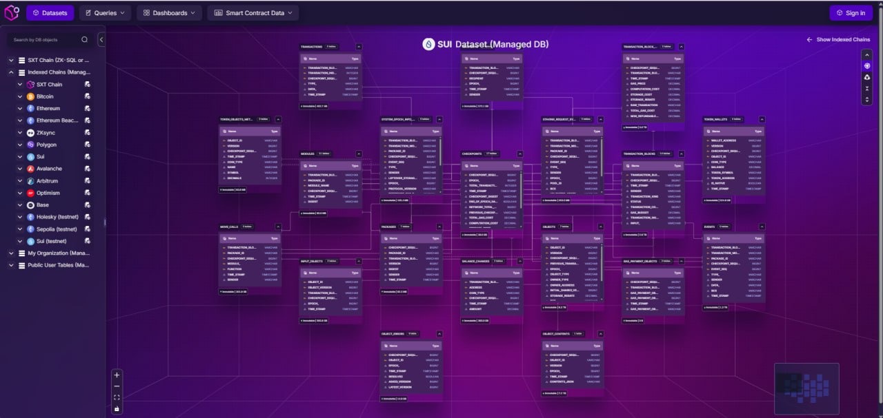 Space and Time indexes Sui data, so SXT keeps a real-time copy of the blockchain in a queryable format and makes it available for analysis